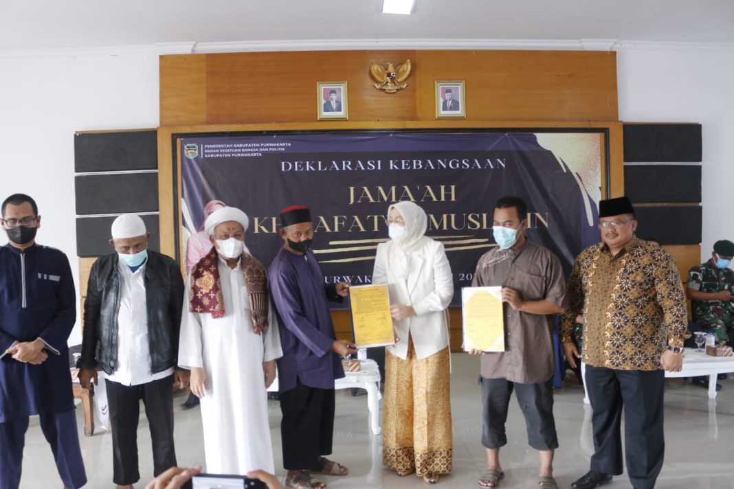 Ikrar tersebut dibacakan anggota oraganisasi Khilafatul Muslimin yang disaksikan Forum Kerukunan Umat Beragama (FKUB), dan Forum Komunikasi Pimpinan Daerah (Forkopimda) Kabupaten Purwakarta, pada Jumat, 8 Juli 2022.