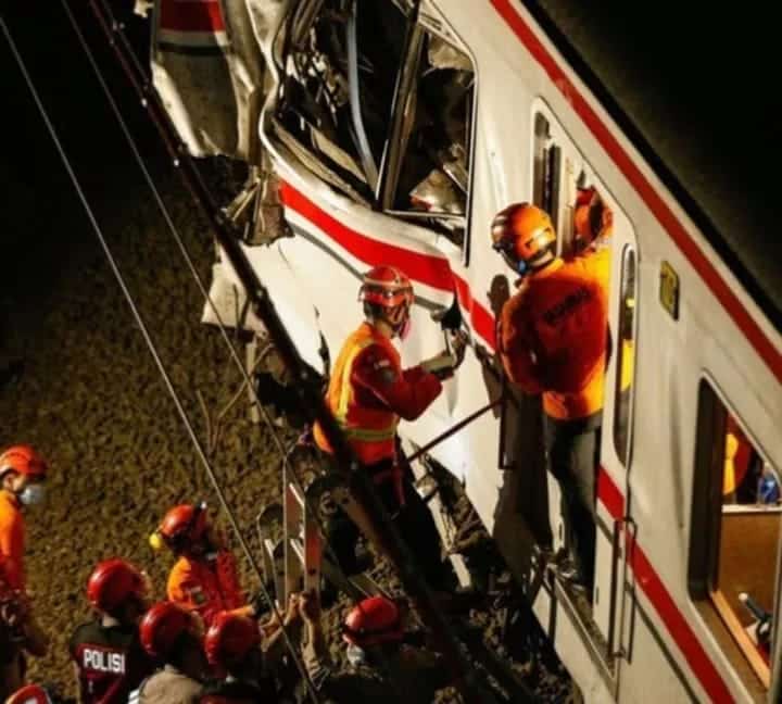 Benturan antara kereta komuter dan kereta jarak jauh pada Senin malam itu menyisakan kerusakan parah, terutama di bagian gerbong belakang KRL. Di titik itulah banyak penumpang terjebak, membuat proses evakuasi berjalan dramatis dan memakan waktu berjam-jam.