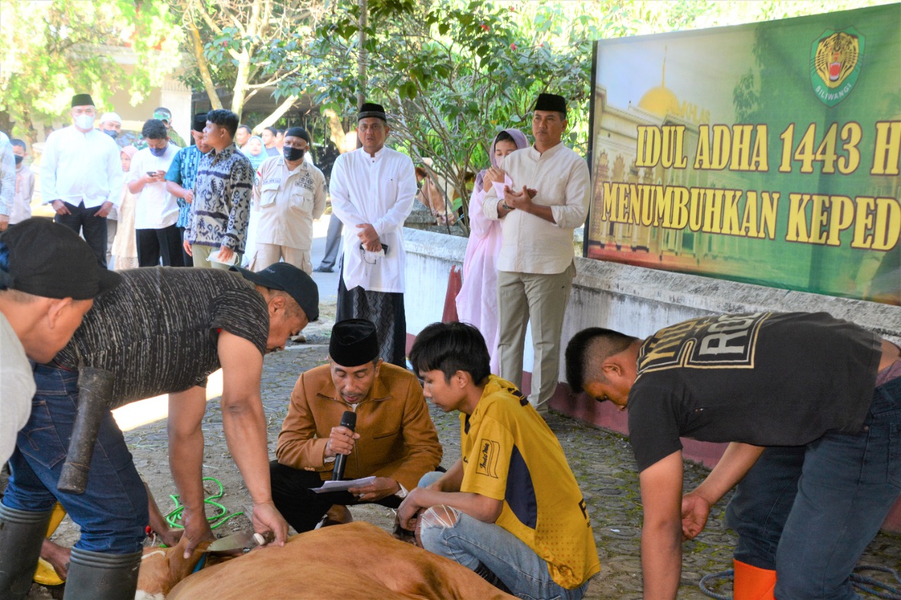 Seusai melaksanakan Salat Idul Adha, Pangdam III/Siliwangi beserta Pejabat Utama Kodam menyerahkan hewan qurban. Untuk kali ini hewan qurban yang diterima panitia, sapi sebanyak 8 ekor dan kambing 3 ekor, disembelih dan dagingnya dibagikan kepada masyarakat sekitar serta anak yatim piatu.