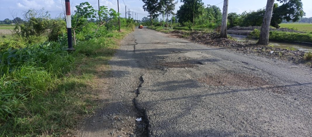 Tepatnya, di 3 (tiga) titik dibiarkan rusak parah. Apalagi, disaat musim penghujan akses jalan itu tergenang air.