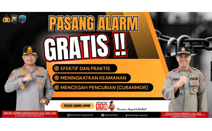 Kegiatan ini merupakan bentuk antisipasi atas maraknya kasus curanmor yang kerap meresahkan warga, khususnya di wilayah hukum Gunung Anyar Selain sebagai langkah pencegahan, pemasangan alarm gratis ini juga menjadi sarana mempererat hubungan antara kepolisian dan masyarakat. Sejak pagi hari, warga tampak antusias mendatangi Mapolsek Gunung Anyar untuk mendaftarkan kendaraannya agar bisa dipasangi alat pengaman tersebut.