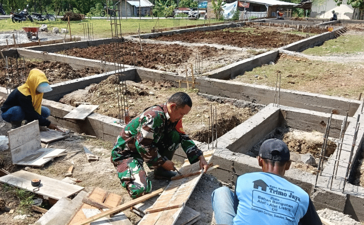 Hal inilah yang ditunjukkan oleh Babinsa Koramil 14/Klego Kodim 0724/Boyolali, Serma M. Khabib, saat bergotong-royong membantu pengecoran pondasi rumah milik warga di Desa Gondanglegi, Kecamatan Klego, Kabupaten Boyolali,