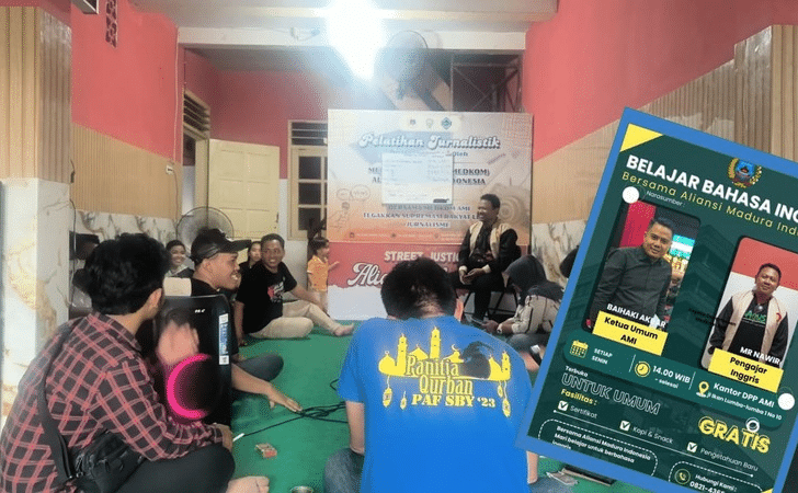 SURABAYA – METROPAGINEWS.COM || Dalam upaya meningkatkan kemampuan komunikasi dan daya saing masyarakat di era global, Aliansi Madura Indonesia (AMI) menggelar pelatihan Bahasa Inggris gratis setiap hari Senin pukul 14.00 WIB di kantor DPP AMI, Jl. Ikan Lumba-Lumba I No. 10, Surabaya.