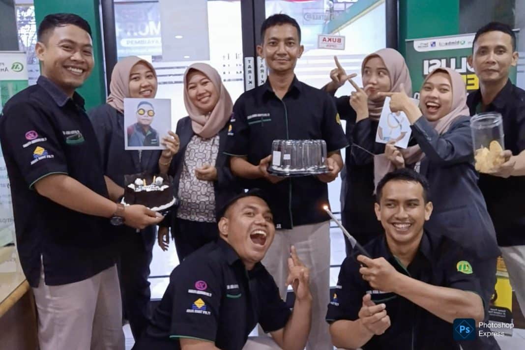 SIDOARJO – METROPAGINEWS.COM || Tak diduga sebelumnya, staf dan manajemen Bank Syariah Annisa Mukti berikan kejutan hadiah kue ulang tahun ke-43 kepada kontributor media Redho Fitriyadi di kantor bank setempat di Sidoarjo, Jawa Timur, Selasa (05/08/205).