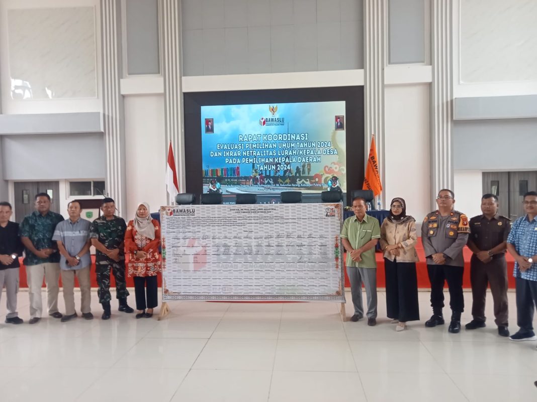 PULANG PlSAU – METRO PAGIMEWS.COM || Badan Pengawas Pemilu Kabupaten Pulang Pisau mengelar Rapat Koordinasi Evaluasi Pemilihan Umum Tahun 2024 dan Ikrar Netralitas Lurah, Kepala Desa pada Pilkada tahun 2024 yang diadakan oleh Bawaslu Kabupaten Pulang Pisau.
