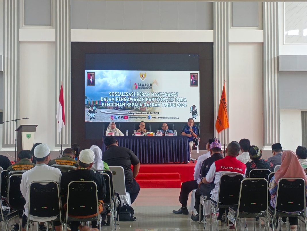 Agar masyarakat mengetahui perannya dalam Pilkada, Bawaslu Pulang Pisau menggelar sosialisasi peran masyarakat dalam pengawasan partisipatif, pada pemilihan kepala daerah tahun 2024, di Aula Banama Tingang, Rabu, (24 Juli 2024