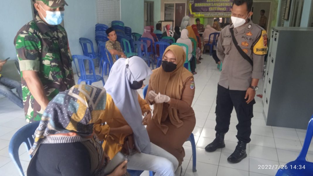 Bhabinkamtibmas Desa mekarmukti Kecamatan cisaga Bripka Okte Pacna sinergi dengan Babinsa Sersan mayor Encep, melaksanakan pendampingan penyaluran Bantuan Langsung Tunai Dana Desa (BLT DD) tahap 3 dan monitor Pelaksanaan Vaksinasi tahap 1,2 dan 3 di laksanakan di Aula Desa Mekarmukti Selasa 26/07/2022.