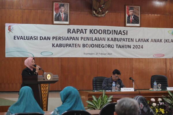 BOJONEGORO – METROPAGINEWS.COM || Pemerintah Kabupaten Bojonegoro melalui Dinas Pemberdayaan Perempuan, Perlindungan Anak dan Keluarga Berencana (P3AKB) menggelar rapat evaluasi dan persiapan penilaian Kabupaten Layak Anak (KLA) Kabupaten Bojonegoro tahun 2024. Rapat yang digelar Selasa (27/2/2024) di ruang Angling Dharma, gedung Pemkab tersebut, menargetkan Bojonegoro naik predikat dari madya menjadi nindya.