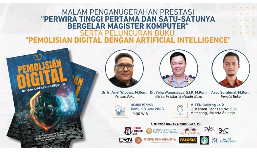Dr. Yehu Wangsajaya, S.I.K., M.Kom. bersama dua sahabatnya, Dr. Ir. Arief Wibowo, M.Kom, dan Asep Surahmat, M.Kom., kemudian berkolaborasi menerbitkan buku “Pemolisian Digital dengan Artificial Intelligence” dan ternyata menjadi buku pertama dan satu-satunya di Indonesia tentang pemolisian digital berbasis kecerdasan buatan, yang diluncurkan tanggal 28 Juni 2023.
