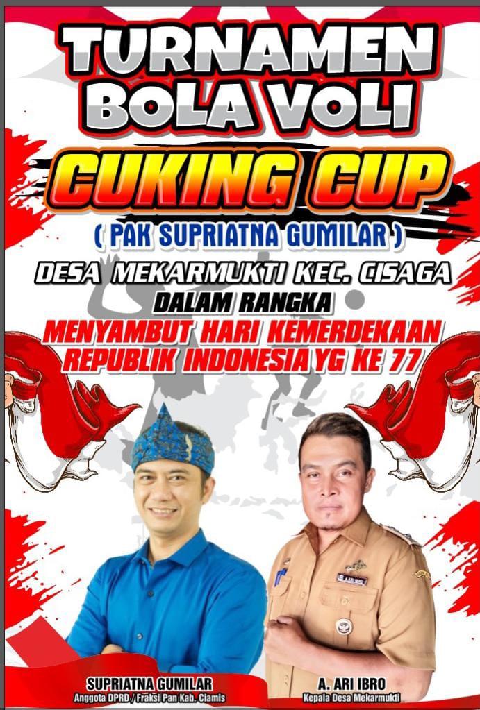 Masyarakat Desa mekarmukti, Dengan Turnamen Bola Voli CUKING CUP Dalam Rangka Menyambut HUT RI ke 77 mengucapkan Terimakasih kepada Bapak Dewan dari Partai PAN ( CUKING ) yang telah memberikan partisipasinya, mudah mudahan kebaikan bapa Dewan terbalas dan terjawab di hari kemudian,, Aamiin,,