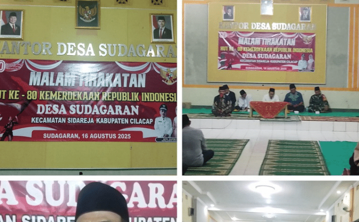 CILACAP – METROPAGINEWS.COM || Menyambut Hari Ulang Tahun (HUT) ke-80 Kemerdekaan Republik Indonesia, Pemerintah Desa Sudagaran, Kecamatan Sidareja, Kabupaten Cilacap, menggelar Malam Tirakatan di Balai Desa setempat, Sabtu malam (16/8/2025). Acara berlangsung khidmat dengan doa, renungan, dan kebersamaan masyarakat.
