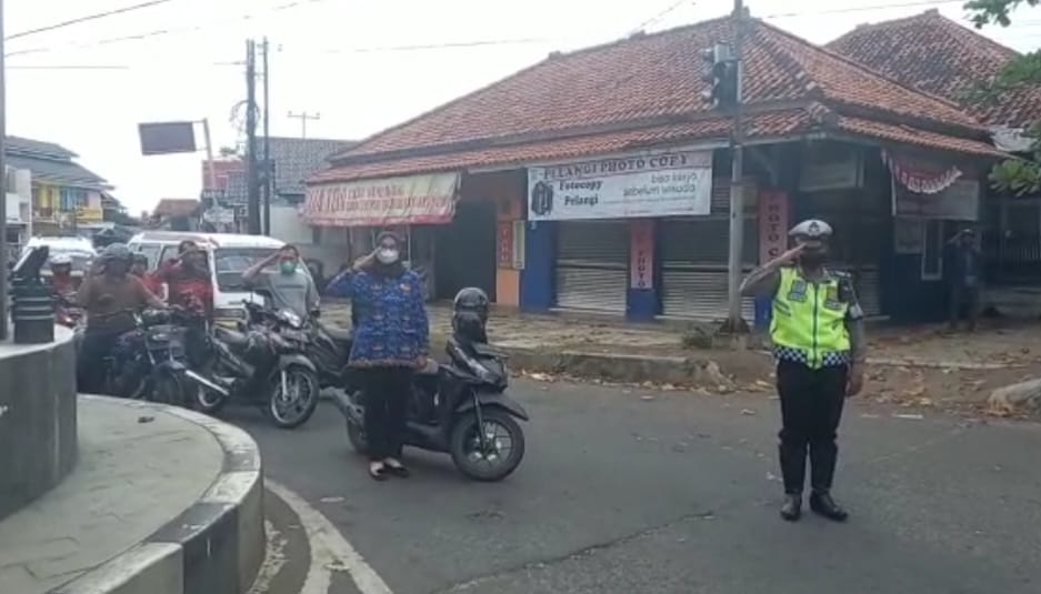 Seketika itu, seluruh pengguna jalan mematikan mesin kendaraannya. Baik yang roda dua maupun roda empat. Mereka langsung berdiri dengan sikap sempurna dan hormat ke bendera merah putih sembari menyanyikan lagu Indonesia Raya.