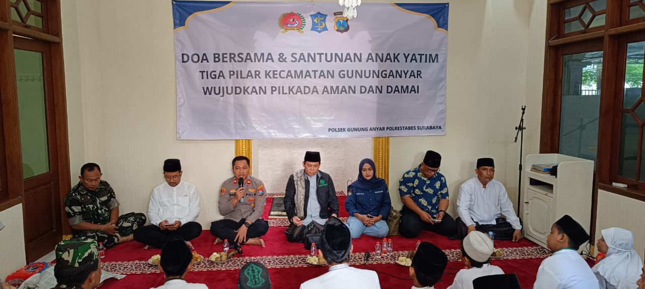 Doa Bersama dan Santunan Anak Yatim Tiga Pilar Kecamatan Gunung Anyar Wujudkan Pilkada Aman dan Damai