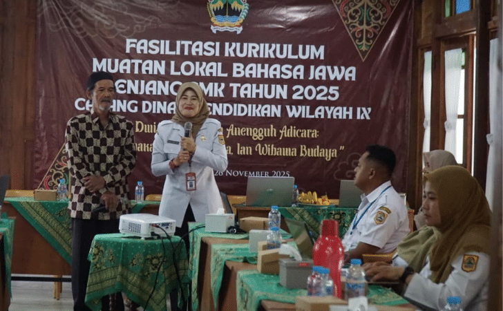 PURBALINGGA —METROPAGINEWS.COM || Cabang Dinas Pendidikan Wilayah IX Dinas Pendidikan dan Kebudayaan Provinsi Jawa Tengah menggelar Fasilitasi Kurikulum Muatan Lokal Bahasa Jawa Jenjang SMK Tahun 2025 di Kebon Dalem Waroeng & Wedangan, Jl. Raya Kalikajar, Purbalingga.Rabu (26/11)