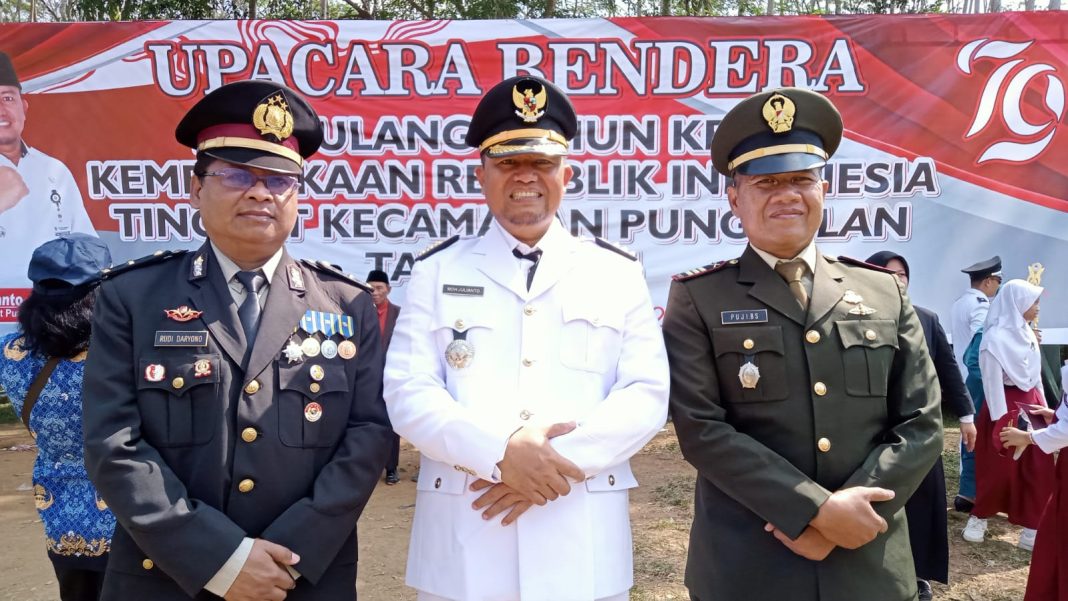 Camat Punggelan Muhammad Julianto selaku Inspektur Upacara dalam menyampaikan amanatnya dari PJ Gubernur Jawa Tengah dengan diawali ucapan salam dilanjutkan pekikan,”Merdeka!, Merdeka!, Merdeka!”.