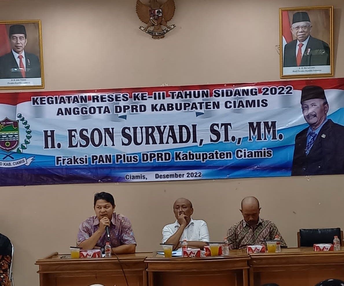 Ciamis metropaginew.com|| Anggota DPRD Kabupaten Ciamis Fraksi PAN Plus H Eson Suryadi ST.,MM menggelar reses ke III masa persidangan Tahun 2022, di Desa Kepel Kecamatan Cisaga, jum’at 16/12/2022
