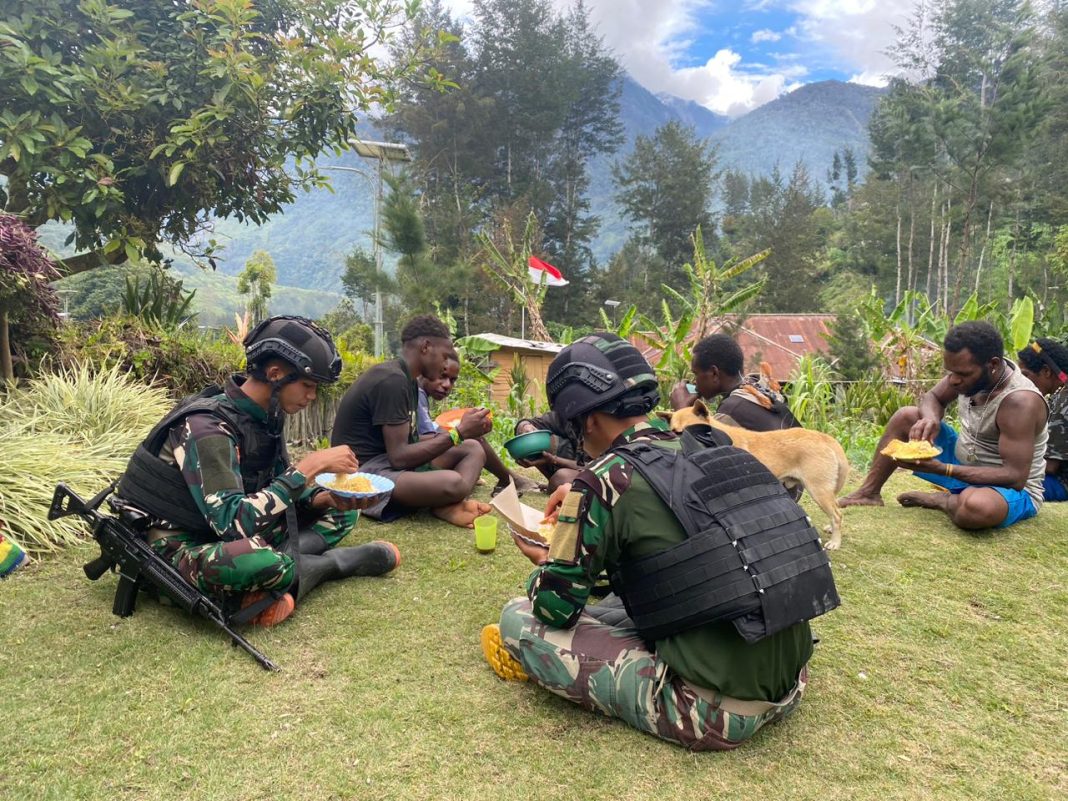 “Kali ini Satgas datang ke honai mama membawa bahan makanan dan juga bumbu untuk dimasak, dan disantap bersama,” ungkap Danpos.