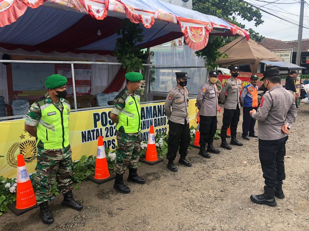 Ciamis metropaginews.com|| Kapos Pam Operasi Lilin Lodaya 2022 Cisaga Iptu Agus Budi melaksanakan apel pagi dalam rangka pengamanan Natal dan tahun baru 2023 bertempat Pps Pam Utama jalan raya Persimpangan 3 Cisaga ,jum’at 30/12/20222