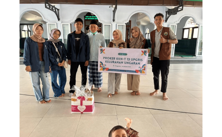 UNGARAN – METROPAGINEWS.COM || Kelompok 13 Kuliah Kerja Nyata (KKN) Universitas PGRI Semarang (UPGRIS) melaksanakan kegiatan sosial bertajuk “Jumat Berkah” di Masjid Baitussyakur, RW 01 Kelurahan Ungaran, sebagai bentuk implementasi program kerja yang berfokus pada kepedulian sosial dan pengabdian kepada masyarakat. (10/10/2025).