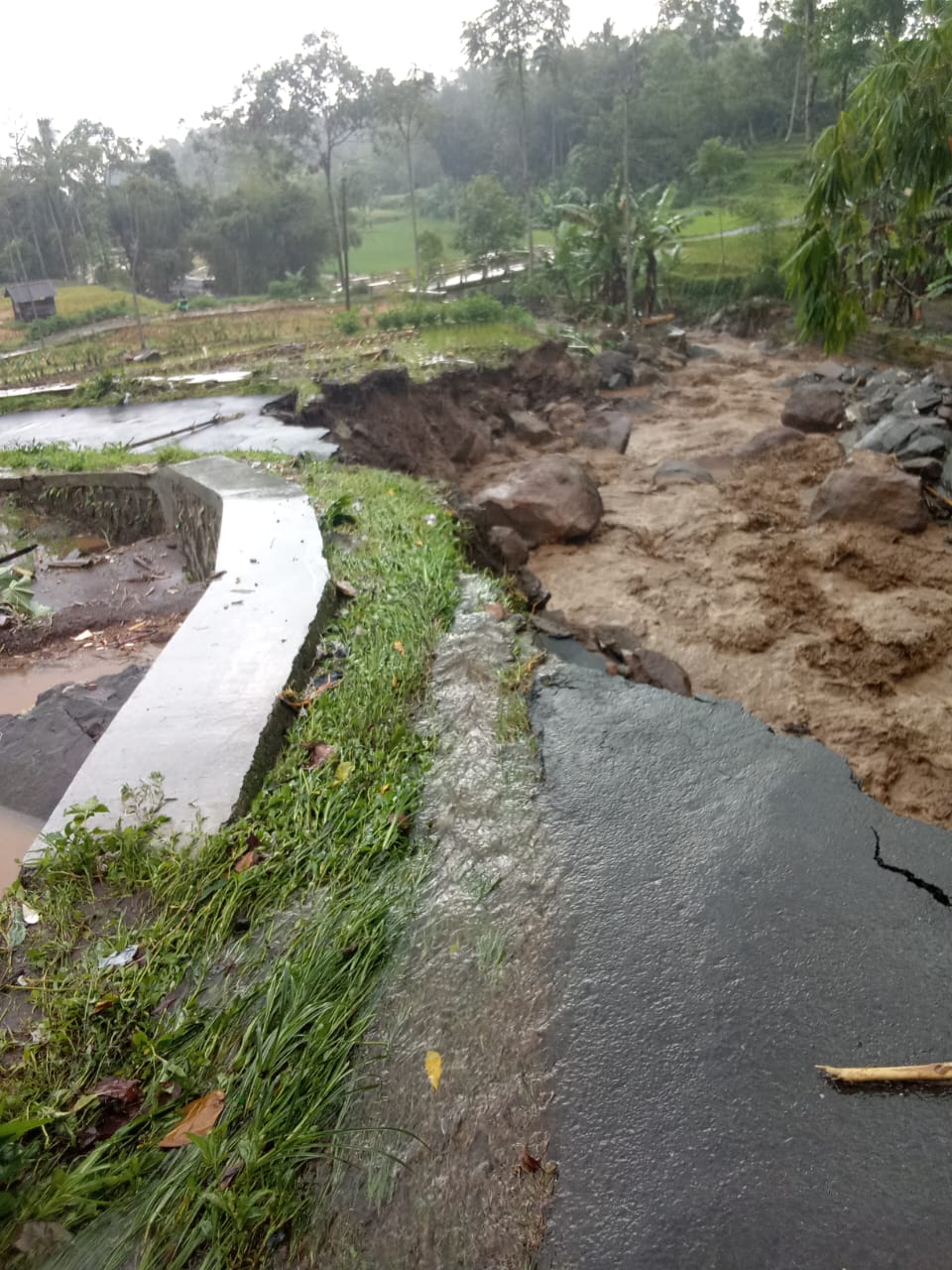 Kepala Desa Ragatunjung Masduki SE melalui Sekretaris Desa Ruswadiono S.Kom yang langsung meninjau ke lokasi titik bencana mengatakan, intensitas hujan yang tinggi sebabkan putusnya Jalan Poros Kabupaten ini terputus dan beberapa titik tanah longsor.