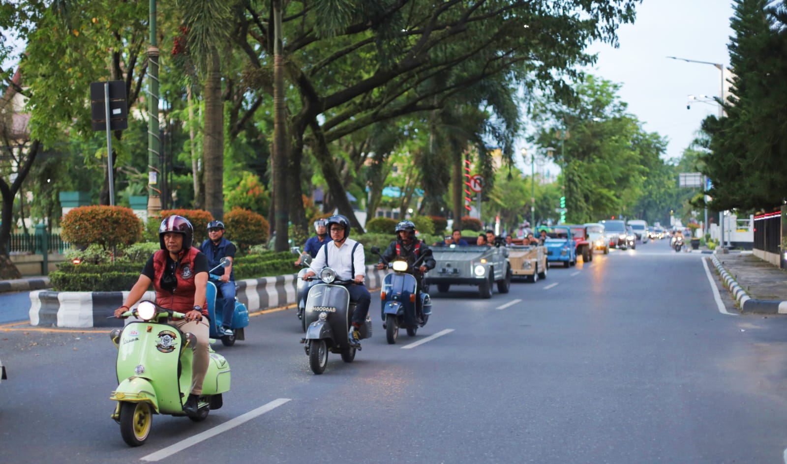 Banjarmasin – metropaginews.com || Iring-iringan kabriolet dan skuter klasik tampak menyusuri sejumlah ruas jalan utama Kota Banjarmasin, sore. Di balik kursi penumpang, Deputi Gubernur Senior Bank Indonesia, Destry Damayanti, didampingi Kepala Perwakilan Bank Indonesia Provinsi Kalimantan Selatan, Wahyu Pratomo, terlihat antusias menikmati kesyahduan panorama adimarga Kota Seribu Sungai.