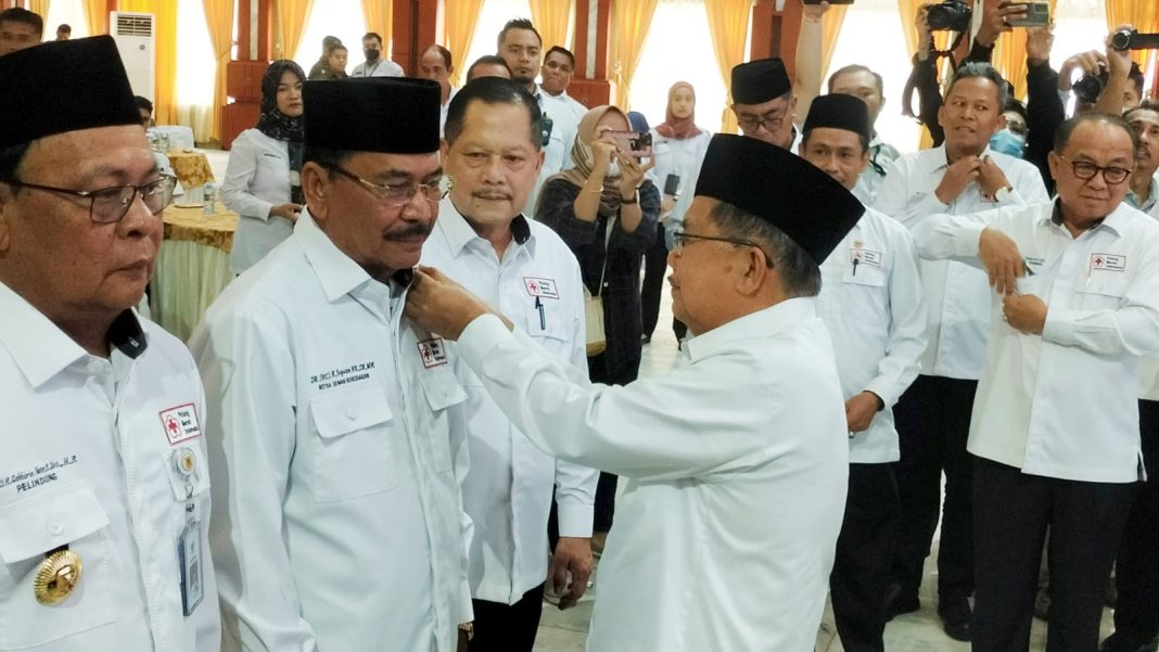 BANJARMASIN – metropaginews.com || Mantan Wakil Presiden Republik Indonesia Dr. (HC) Drs. DH. Muhammad Jusuf Kalla (JK) juga Ketua Umum Palang Merah Indonesia (PMI) melantik Pengurus Palang Merah (PMI) Provinsi Kalimantan Selatan Periode 2022 – 2027 di Gedung Mahligai Pancasila, Jalan Mayjen R. Suprapto, Kelurahan Antasan Besar, Kecamatan Banjarmasin Tengah, Banjarmasin. Rabu (18/1/2023).