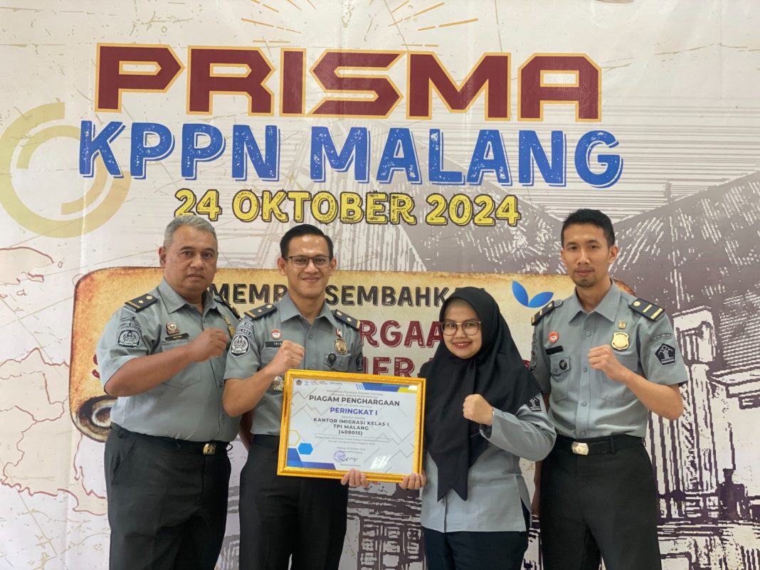 MALANG – METROPAGINEWS.COM || Kantor Imigrasi Kelas I TPI Malang berhasil meraih penghargaan **peringkat I Kategori Digitalisasi Pembayaran** dari Kantor Pelayanan Perbendaharaan Negara (KPPN) Malang pada Hari Kamis, 24 Oktober 2024. Kantor Imigrasi Kelas I TPI Malang