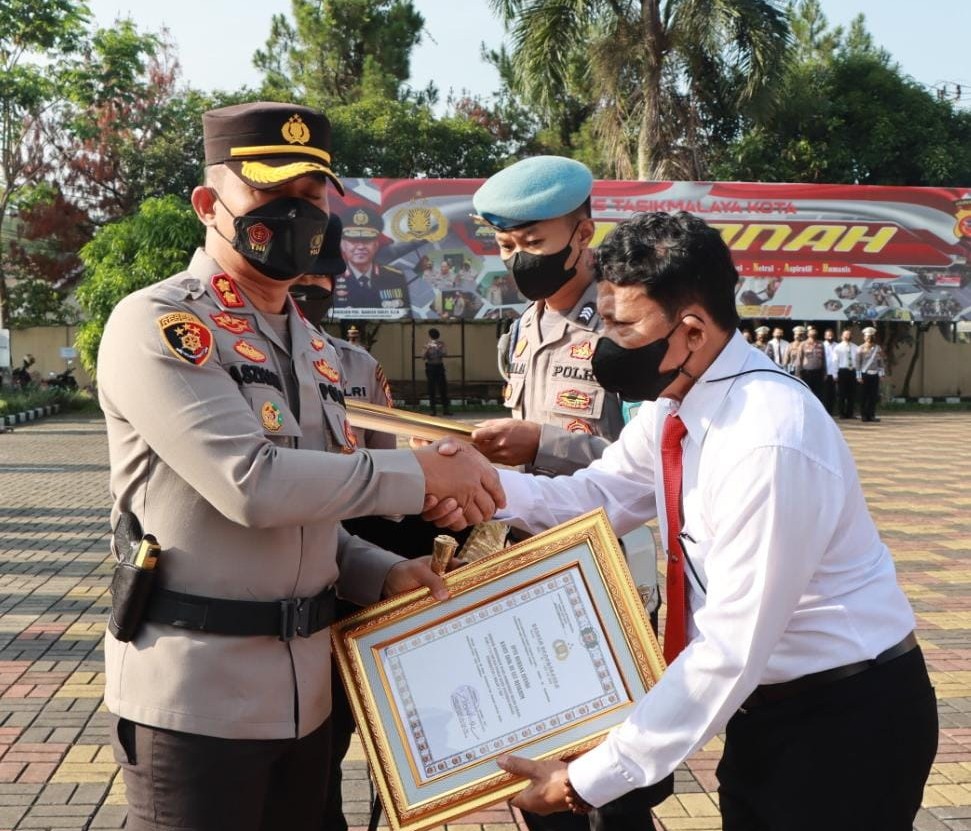 Pada kesempatan itu, Kapolres Tasikmalaya Kota AKBP Aszhari Kurniawan mengucapkan selamat atas Kenaikan Pangkat Pengabdian.