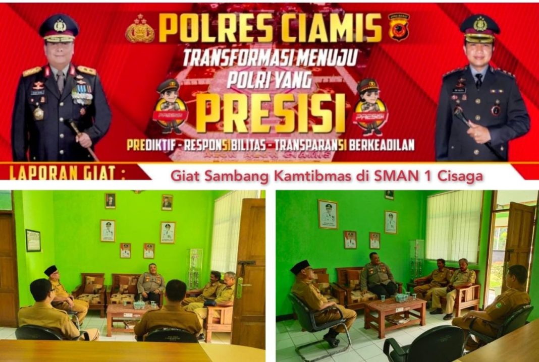 Ciamis-metropaginews.com || Kapolsek Cisaga Iptu Agus Budianto bersama Bhabinkamtibmas Bripka Okte Panca melaksanakan silaturahmi ke Sekolah SMAN I Cisaga Kecamatan Cisaga.swnin 03/10/2022