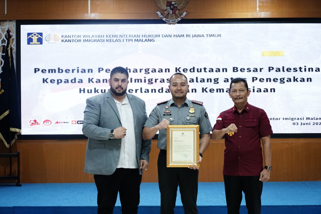 “Penghargaan ini kami berikan sebagai bentuk apresiasi yang setinggi-tingginya atas upaya Kantor Imigrasi Kelas I TPI Malang dalam mengedepankan nilai-nilai kemanusiaan dalam penegakan hukum keimigrasian,” ujar Fathi M Ghazal. “Kami sangat menghargai kebijakan yang telah diambil dan berharap hubungan baik antara Palestina dan Indonesia terus terjalin erat.”