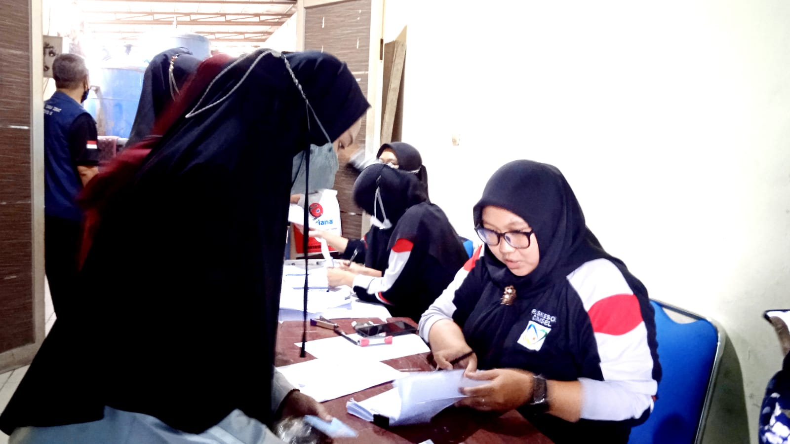 Kita di bantu dari pihak kantor pos 9 orang, yang di tugaskan di Kelurahan utama.