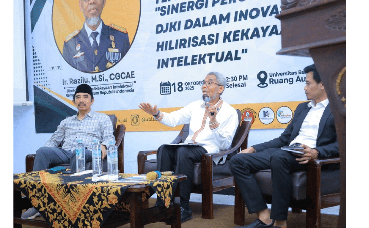 Dalam kesempatan tersebut, Dirjen Kekayaan Intelektual Razilu menegaskan bahwa perguruan tinggi memiliki peran vital sebagai pusat lahirnya ide, riset, dan inovasi yang bernilai ekonomi.