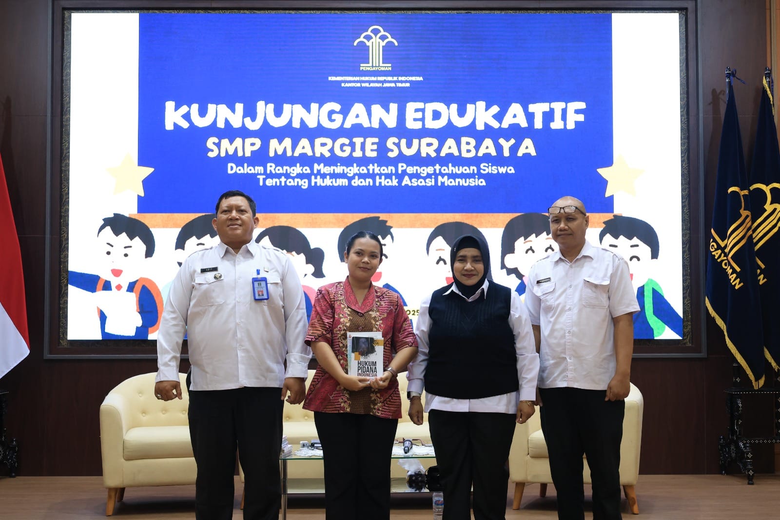 “Selamat datang di Kanwil Kementerian Hukum Jawa Timur. Kami sangat senang bisa menerima adik-adik pelajar yang ingin belajar langsung mengenai peran dan layanan yang kami berikan kepada masyarakat,” ujar Eko.