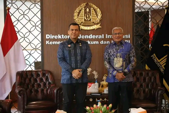 JAKARTA – METROPAGINEWS.COM || Kepala Badan Narkotika Nasional Republik Indonesia (BNN RI), Marthinus Hukom, S.I.K., M.Si., melakukan audiensi dengan Direktur Jenderal (Dirjen) Imigrasi, Silmy Karim, S.E., M.E., M.B.A., di Kantor Ditjen Imigrasi, Kementerian Hukum dan HAM, Rasuna Said, Jakarta Selatan, DKI Jakarta, Jumat (12/1).