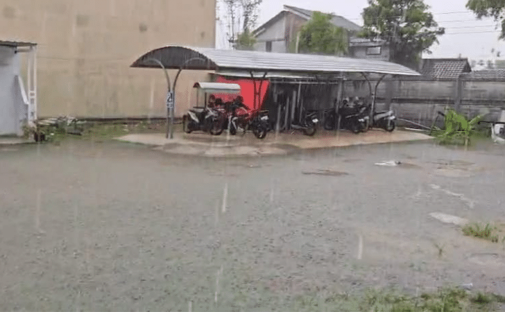 KLATEN – METROPAGINEWS.COM || Hujan deras yang mengguyur wilayah Klaten menyebabkan genangan air di sejumlah titik di Balai Pemasyarakatan (Bapas) Kelas II Klaten. Kondisi ini mengganggu aktivitas harian di kantor tersebut.