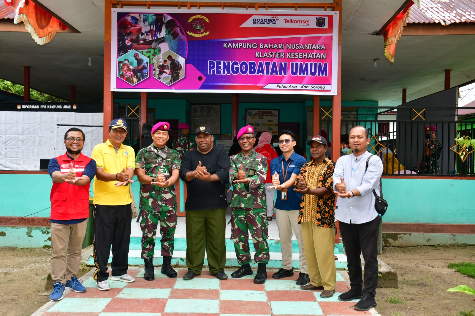Pengobatan tersebut dipimpin langsung oleh Kepala Klinik Pratama Pasmar 3 Mayor Laut (K) Dr. G. Zainul Arifin didampingi Kepala Puskesmas Mayamuk beserta para tenaga kesehatan yang turut membantu dalam melakukan pemeriksaan kepada masyarakat kampung arar dari balita hingga orang dewasa.