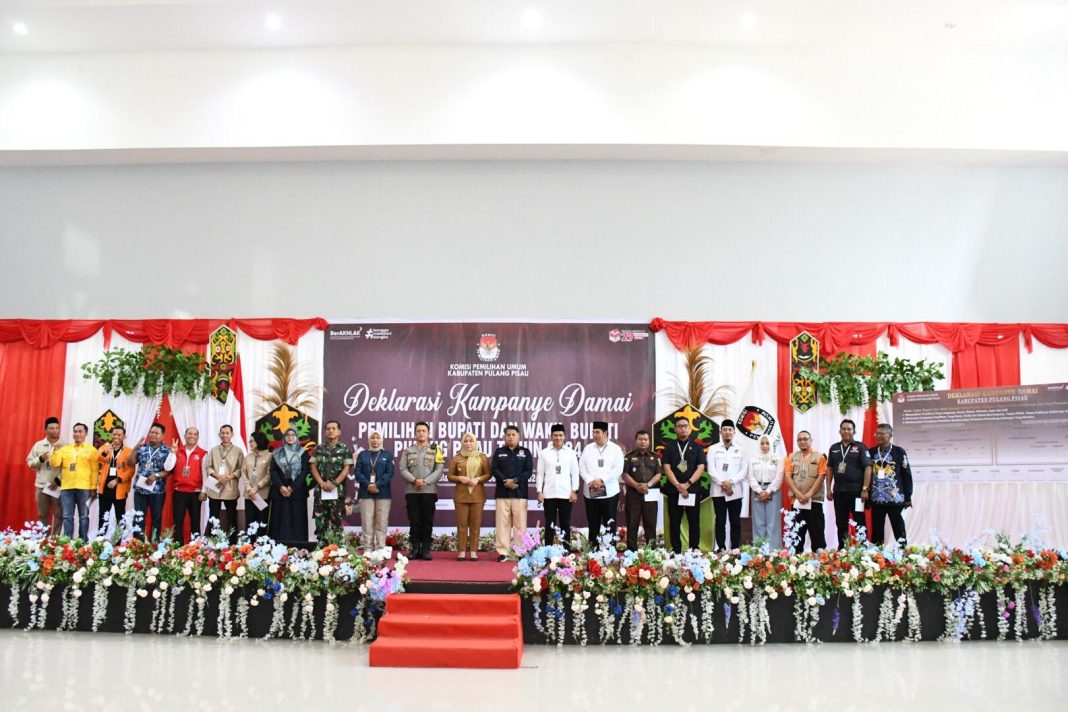 PULANG PISAU-METRO PAGI NEWS.COM || Komisi Pemilihan Umum kabupaten Pulang Pisau Mengelar Deklarasi Kampanye Damai Pilkada 2024, di Gedung Pertemuan Umum (GPU) Handep Hapakat, Selasa (24/9/2024).