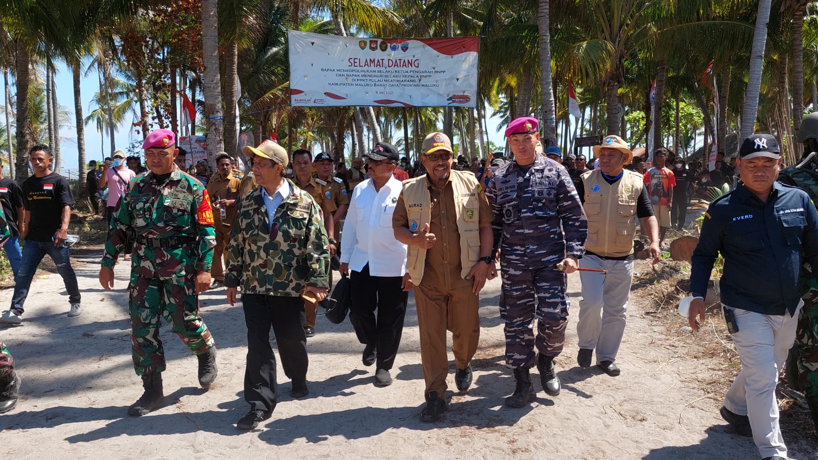 SORONG – METROPAGINEWS.COM || Komandan Batalyon Marinir Pertahanan Pangkalan (Yonmarhanlan) IX Ambon Letkol Marinir Rowin Zummy Simarmata, M.Tr.,Opsla mewakili Komandan Pasmar 3 Brigjen TNI (Mar) Sugianto, S. Sos., menerima Kunjungan Kerja (Kunker) Menteri Koordinator Bidang Politik, Hukum dan Keamanan RI (Menkopolhukam) Bapak. Prof. Dr. Mohammad Mahfud MD, S.H., S.U., M.I.P., dan Menteri Dalam Negeri RI (Mendagri) Bapak. Jenderal Polisi (Purn) Prof. Drs. H. Muhammad Tito Karnavian., M.A., P.h.D., beserta rombongan di pulau Metimiarang dalam rangka pelaksanaan Gerakan Pembangunan Terpadu Perbatasan (Gerbangdutas) tahun 2023 di pulau Metimiarang kabupaten Maluku Barat Daya, Provinsi Maluku. Kamis (15/06/2023)