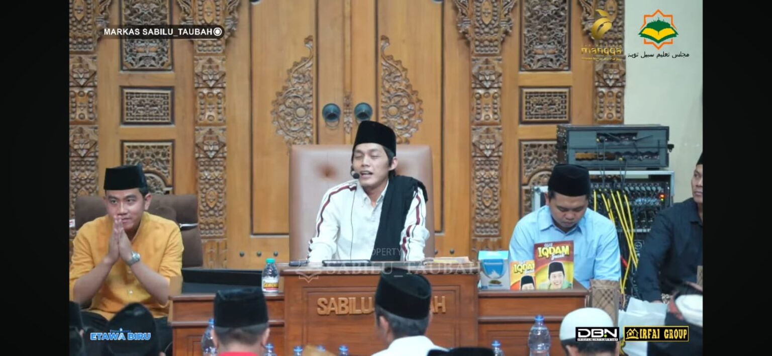 Begitu masuk Gibran langsung menuju tempat pengajian dan disambut Gus Iqdam. Kemudian duduk disamping kiri Gus Iqdam, yang sudah lebih dulu memulai pengajian rutin setiap malam selasa.
