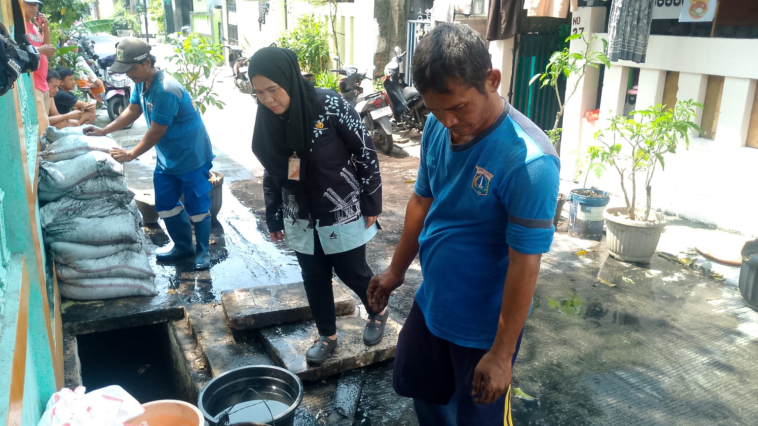 Kasatpel SDA kecamatan Tanjung Priok Neti Heria S.T mengatakan membersihkan saluran air yang ada di jalan swasembada Barat 14 RT 06/RW 14 kelurahan Kebun Bawang.
