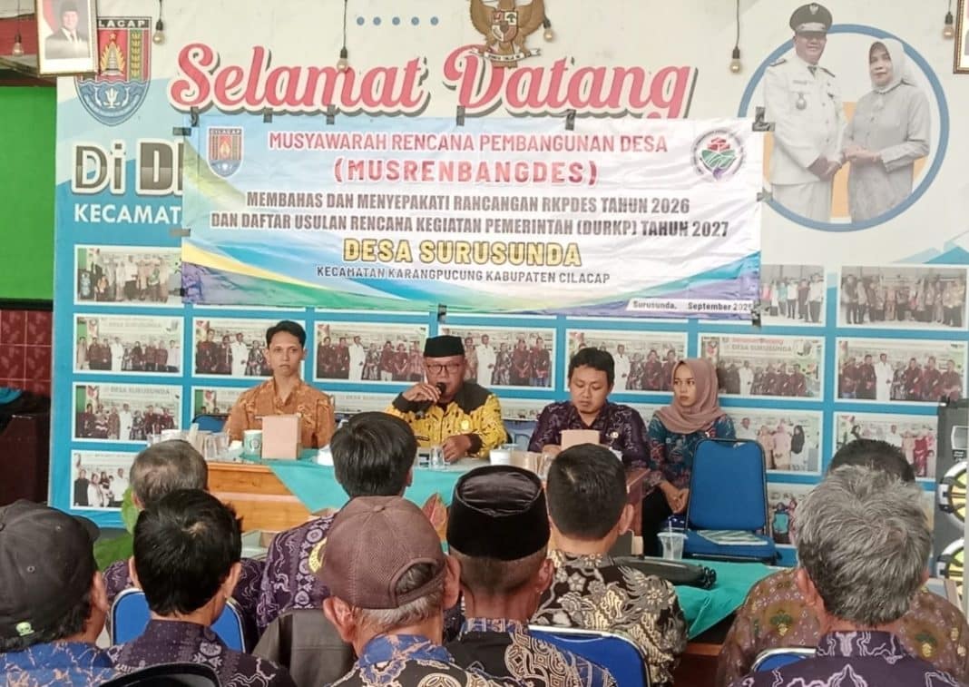 CILACAP – METROPAGINEWS.COM || Musyawarah Rencana Pembangunan Desa (Musrenbangdes) Surusunda, Kecamatan Karangpucung, Kabupaten Cilacap, telah menetapkan Rencana Kerja Pemerintah (RKP) Desa Tahun Anggaran 2026. Pengesahan dilakukan Ketua BPD Surusunda pada Jumat (19/9/2025) di pendopo desa.