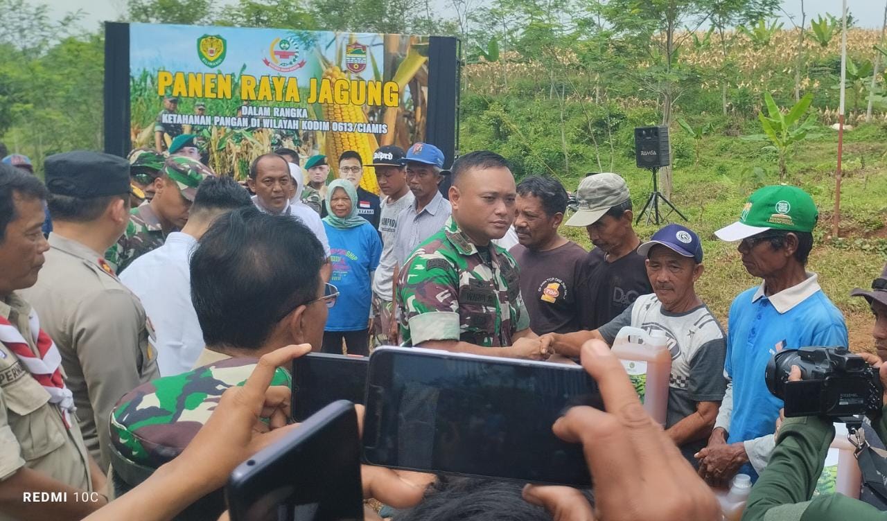 Dandim 0613/Ciamis Letkol INF Wahyu Alfian Arisandi S.IP.,M.I.Pol dalam kesempatan nya menyampaikan kegiatan Program ketahanan pangan, di harapkan bisa menopang atau mensukseskan program pemerintah bidang ketahanan pangan nasional, Panen jagung ini bagian dari upaya TNI bersama Stakeholder terkait dalam mengimplementasikan arahan Presiden terkait menjaga ketahanan pangan Nasional