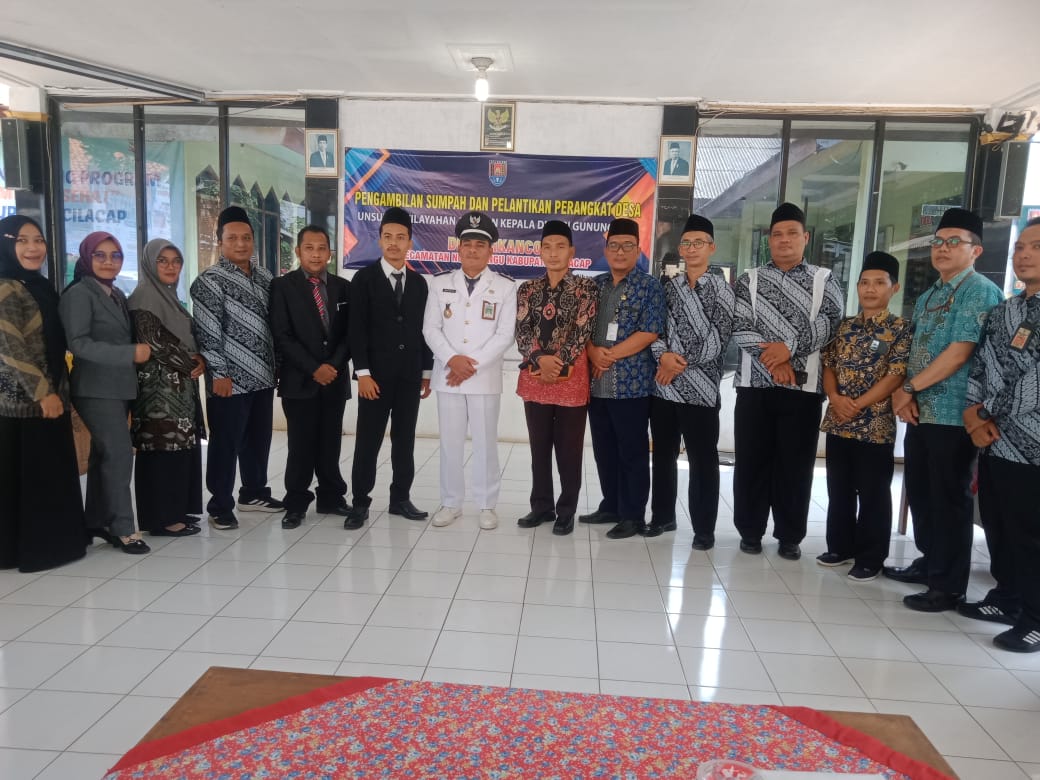 CILACAP-METROPAGINEWS.COM || Prosesi Pelantikan dan Pengambilan sumpah Perangkat Desa jabatan Kepala Dusun Gunung Jaya secara Khidmat digelar di Pendopo Desa Sikanco Kecamatan Nusawungu Kabupaten Cilacap, Rabu (29/5/2024).