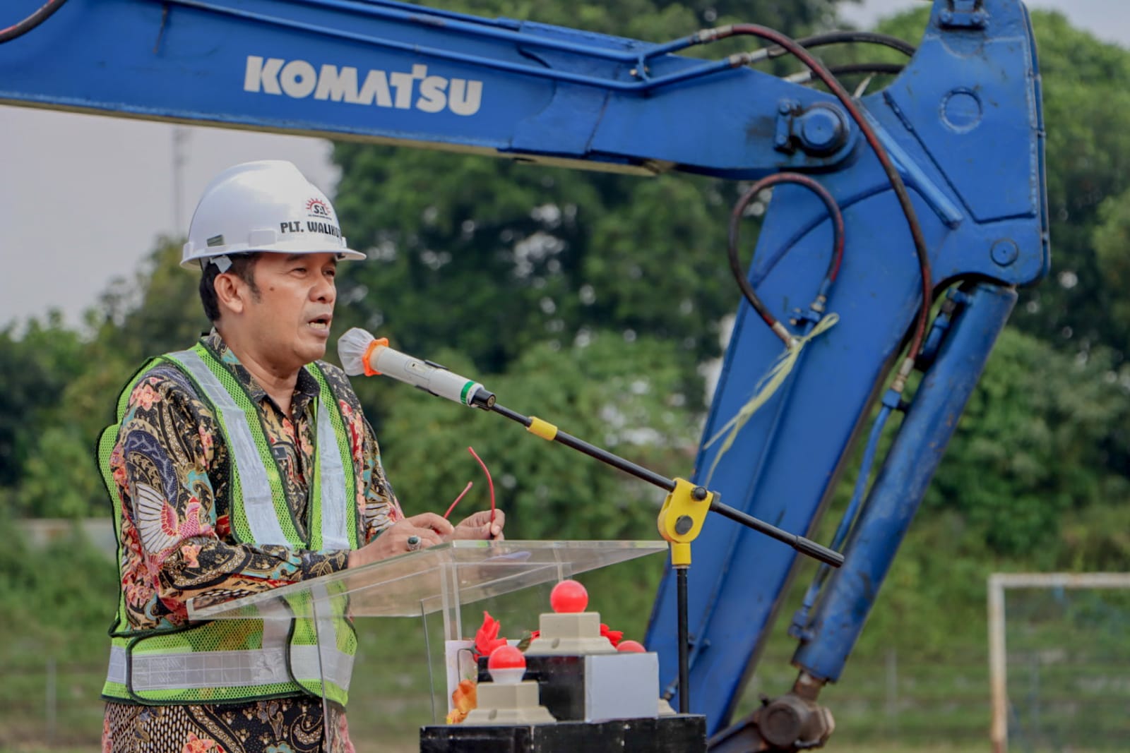 Pelaksana Tugas (Plt.) Wali Kota Cimahi Let. Kol. (Purn) Ngatiyana melakukan Ground Breaking Ceremony atau Peresmian Pembangunan sebagai tanda dimulainya proses revitalisasi Stadion Sangkuriang Cimahi, Jumat (12/8/2022).