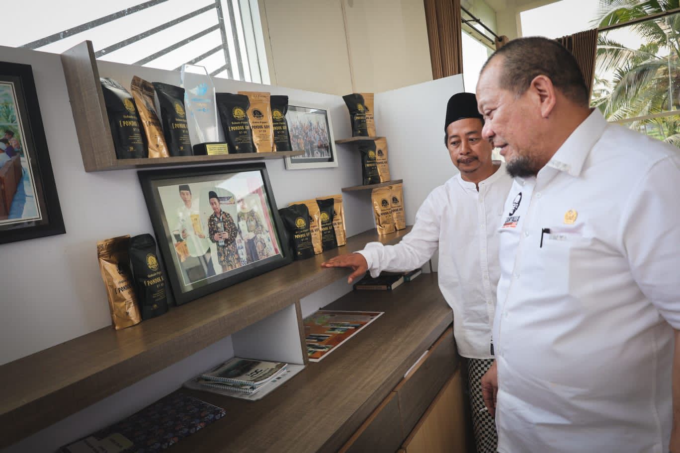 Jember – metropaginews.com || Ketua DPD RI, AA LaNyalla Mahmud Mattalitti, melihat lebih dekat pabrik pengolahan kopi Jember Coffee Center (JCC) milik Pondok Pesantren Al-Hasan 1, saat mengisi masa reses di Jawa Timur, Kamis (28/7/20022).