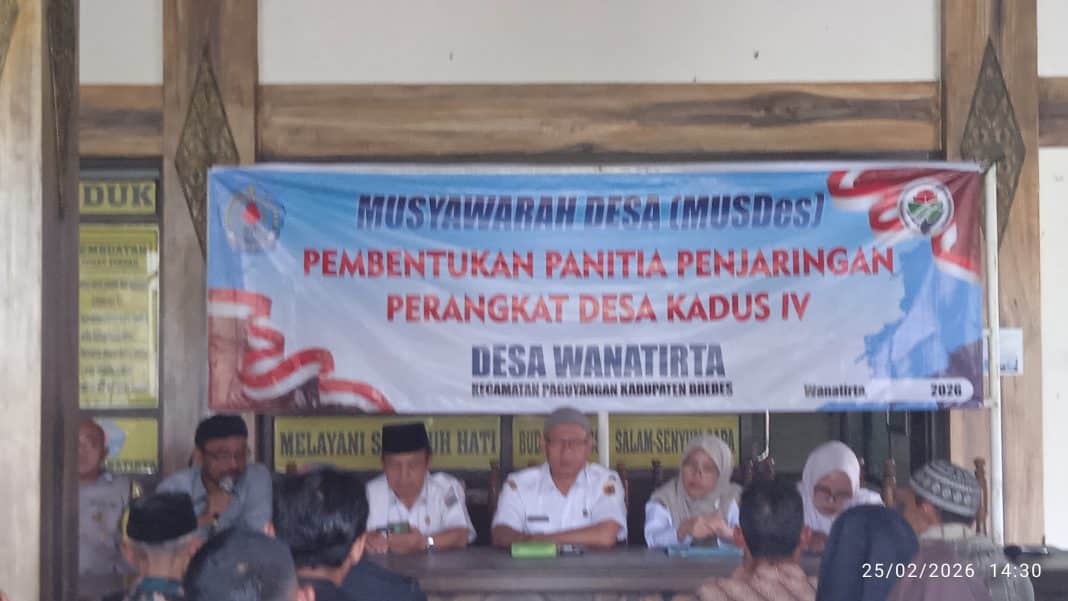 BREBES – METROPAGINEWS.COM || Pemerintah Desa Wanatirta, Kecamatan Paguyangan, Kabupaten Brebes, resmi menetapkan delapan Keluarga Penerima Manfaat (KPM) Bantuan Langsung Tunai Dana Desa (BLT-DD) Tahun 2026 dalam Musyawarah Desa (Musdes) yang digelar pada Rabu (25/2/2026) di Kantor Desa Wanatirta.