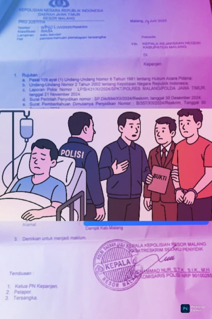 Kasus ini bermula dari laporan yang masuk ke Polres Malang pada 21 November 2024 dengan Nomor: LP/B/431/XI/2024/SPKT/POLRES MALANG/POLDA JAWA TIMUR. Namun, proses hukum berjalan lambat. Surat Perintah Penyidikan (SP.Dik) baru diterbitkan pada 30 Desember 2024, bersamaan dengan dikirimkannya Surat Pemberitahuan Dimulainya Penyidikan (SPDP) lebih dari sebulan setelah laporan diterima.