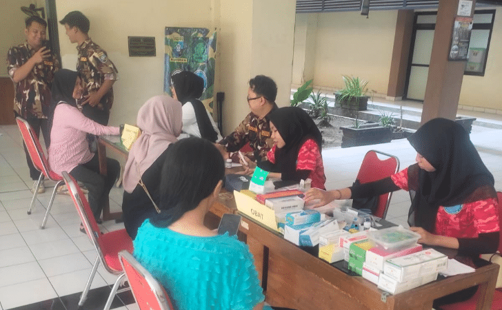 Kegiatan ini melayani pengecekan kesehatan dasar bagi warga, meliputi pemeriksaan tekanan darah, kadar gula darah, kadar asam urat, serta pembagian vitamin secara cuma-cuma.