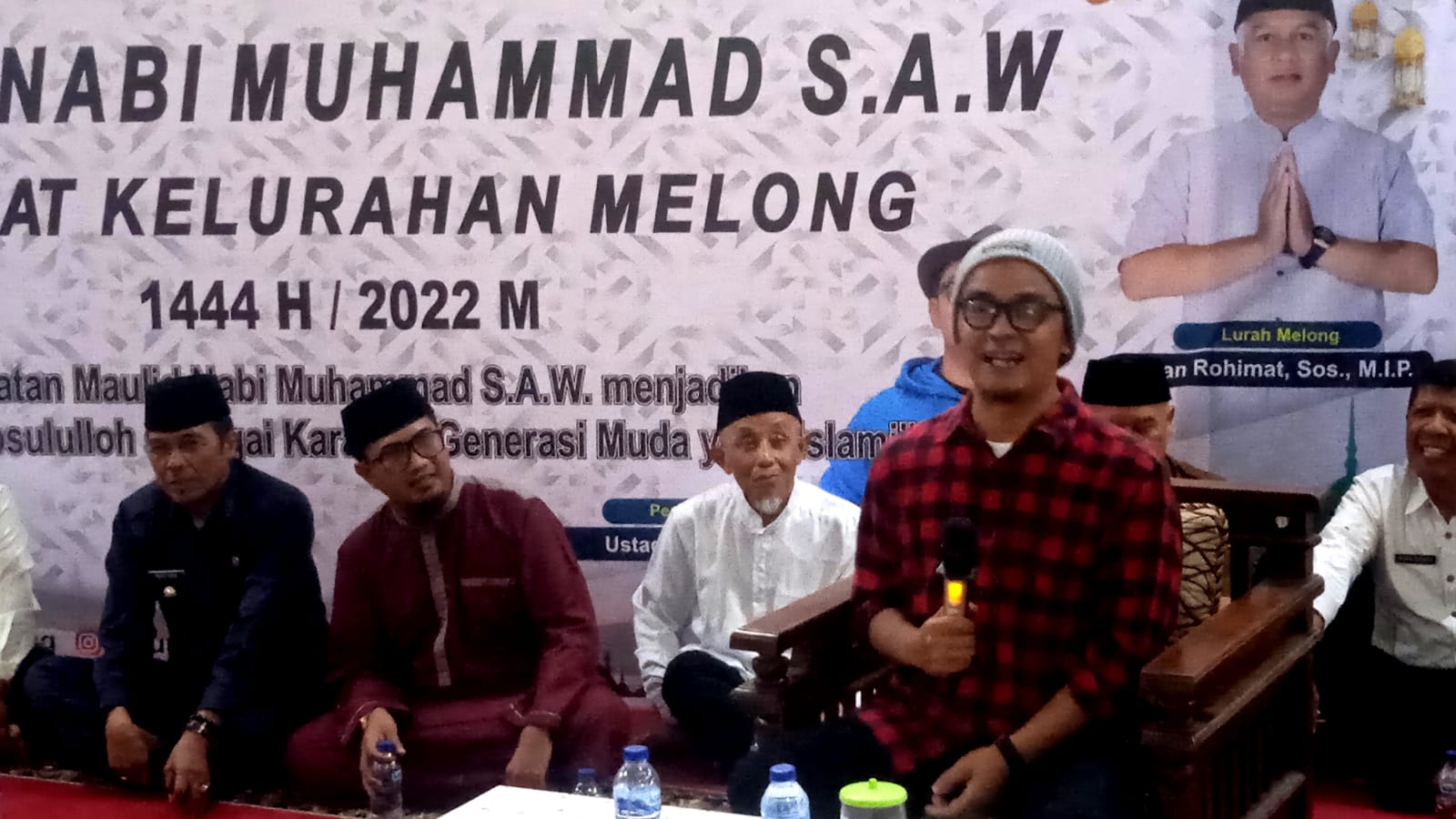 Dalam tausyiah nya, Ustadz Evie Effendi mengajak warga kelurahan Melong untuk selalu meneladani akhlak Nabi Muhammad SAW.