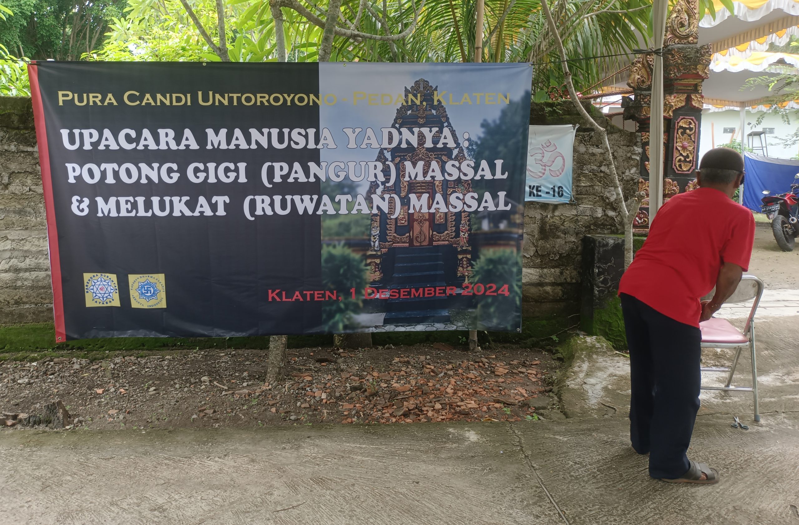 Manusia Yadnya, yaitu korban suci untuk menyucikan kehidupan manusia, dalam konteks ini adalah kegiatan Potong Gigi ( Pangur ) Massal & Melukat ( Ruwatan ) Massal Di Candi Untoroyono, Desa Kalangan, Pedan Kabupaten Klaten, yang akan berlangsung esok pagi ( 01/12/2024 ) pada jam 07.00 Wib sampai dengan selesai.